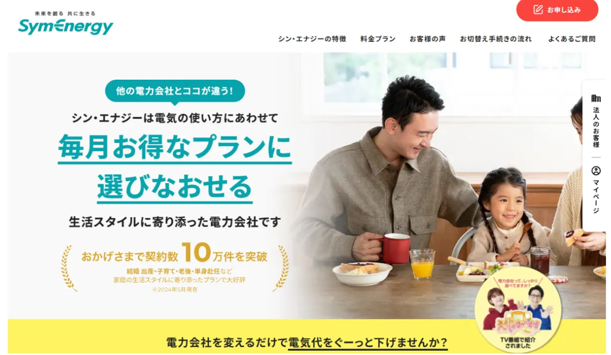(9:00~18:00)編集部のイチオシポイントシン・エナジーは、10万件以上の契約を達成している電力会社であり、実績が豊富です。