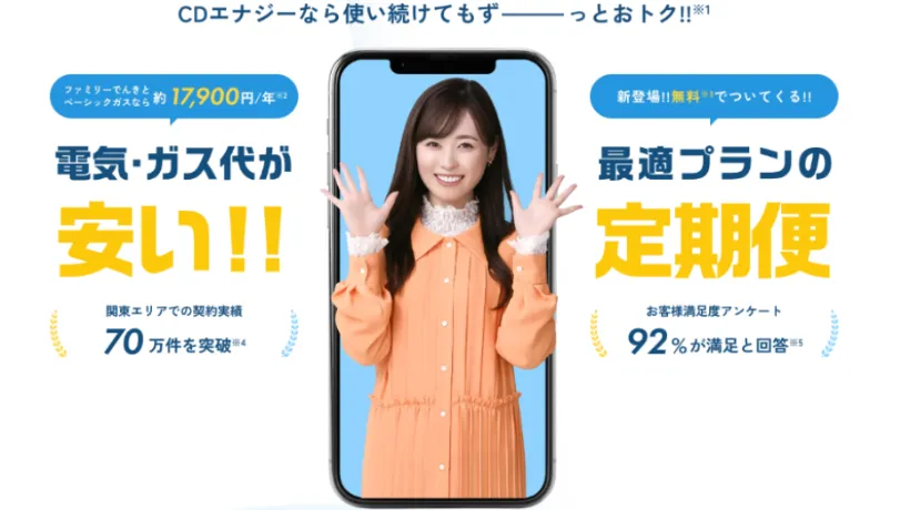 というのも、CDエナジーダイレクトは関東圏を中心に電力サービスを展開しているほか、これまで70万件以上の契約実績を誇っているからです。