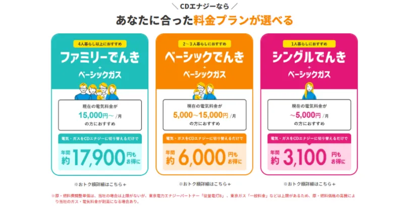 CDエナジーダイレクトの料金プランは、以下のとおりです。