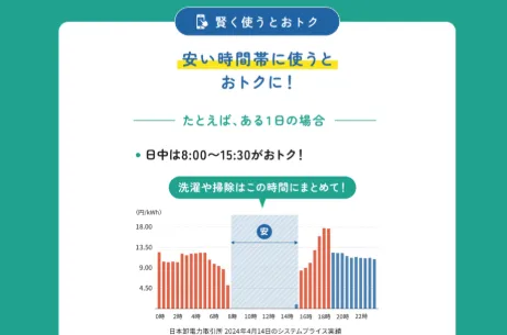 在宅ワークなどでこの時間帯に自宅にいる方は、意識しなくても仕事中の電気代がお得になるといえますね。