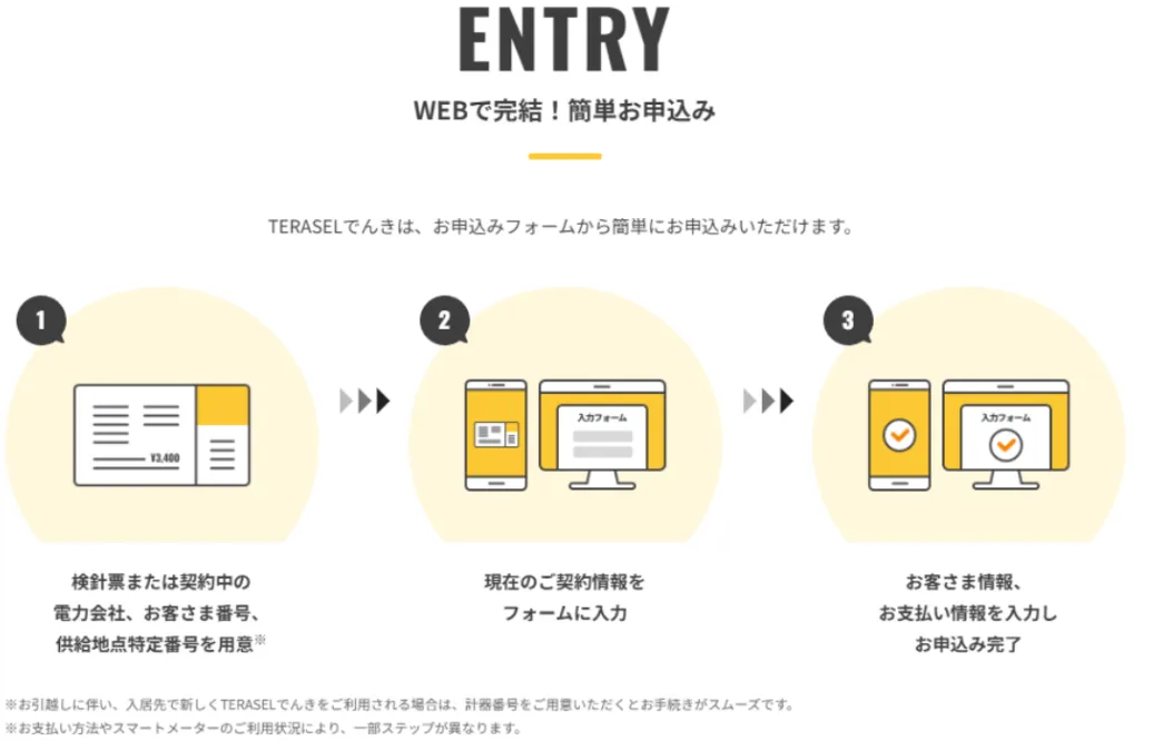 次に、TERASELでんきの利用手順を見ていきましょう。
